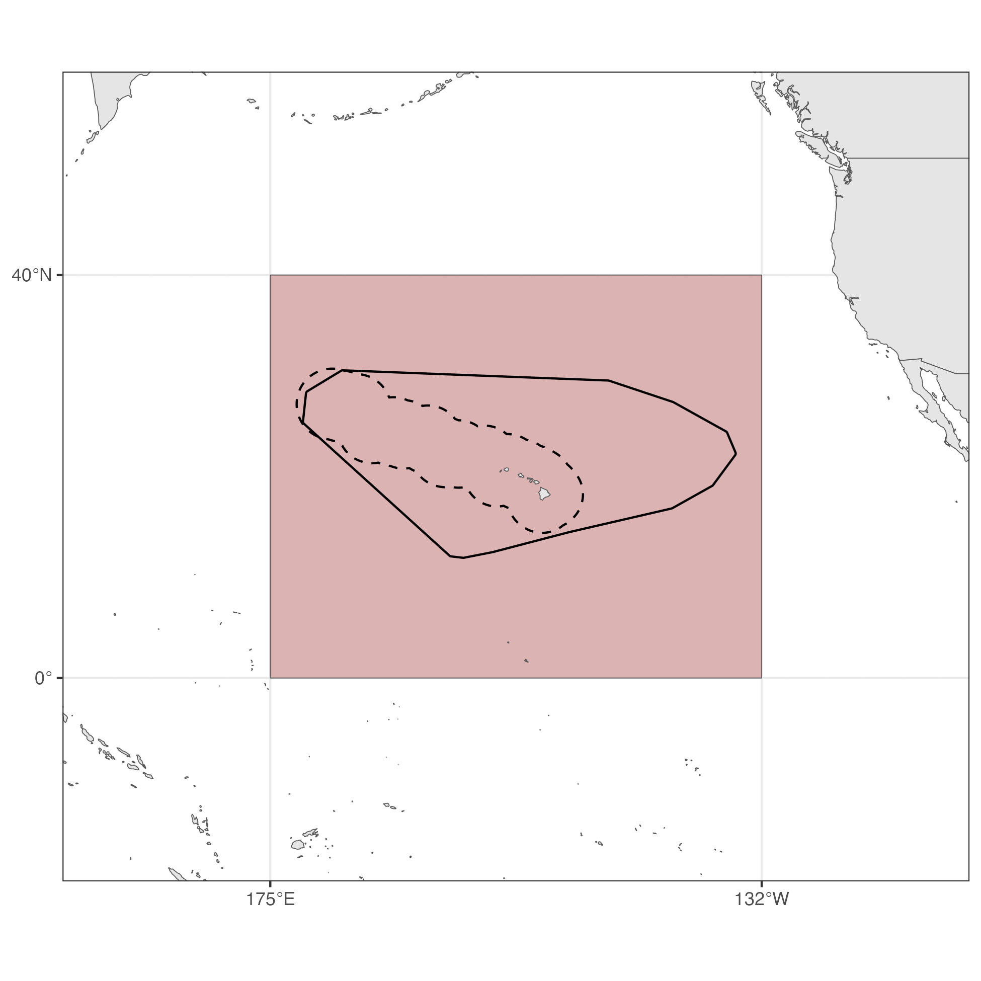The Hawaiʻi pelagic false killer whale population experiences a greater degree of overlap with commercial longline fisheries and has a history of depredating bait and catch. Bycatch of Hawaiʻi pelagic false killer whales has long exceeded allowable levels, leading to the formation of a Take Reduction Team and Take Reduction Plan to reduce serious injury and mortality from fishing operations, in accordance with the Marine Mammal Protection Act. Prior to 2023, the Hawaiʻi pelagic false killer whale population was assessed and managed within the EEZ. However, following updated NOAA Fisheries guidance for assessing marine mammal stocks, an assessment area beyond the EEZ was developed in an effort to better represent the geographic range of the population. The Hawaiʻi pelagic false killer whale assessment area is defined as a minimum convex polygon of a 35-km buffer around all genetic, telemetry, sighting, and bycatch location data known or assumed to be of Hawaiʻi pelagic false killer whales. Assessing the distribution and abundance of Hawaiʻi pelagic false killer whales in this area is necessary for ongoing efforts to measure and mitigate impacts from fisheries interactions.