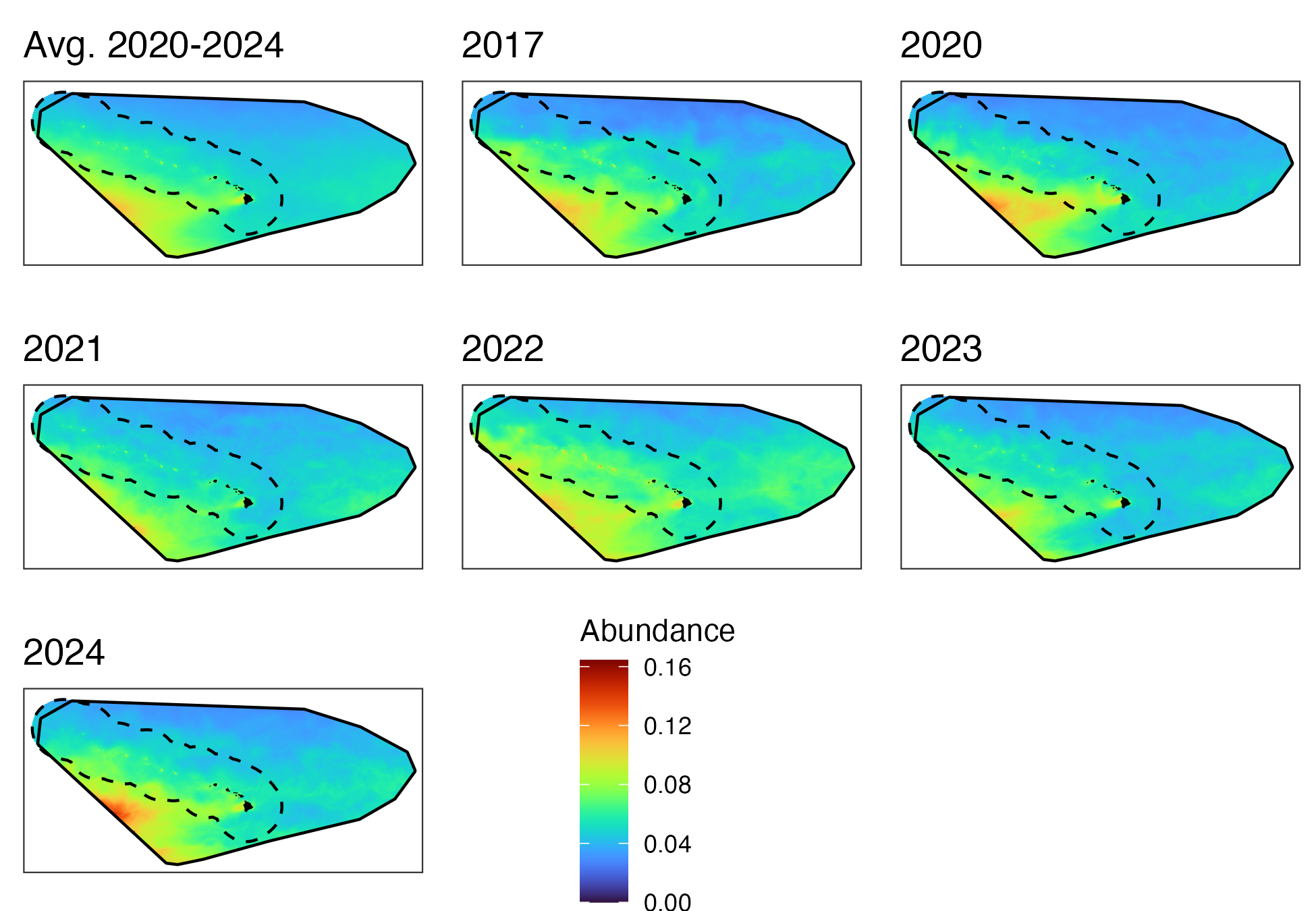 writeRaster(pred_avg, file.path(local_wd,"output","yearly_avg_abund.tif"), overwrite=TRUE)Create abundance plots